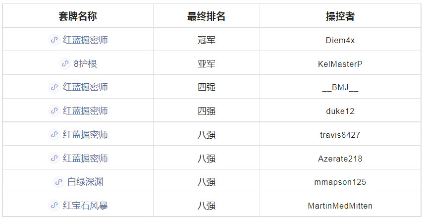 八强有5套红蓝掘密师,最后也是这套牌夺冠