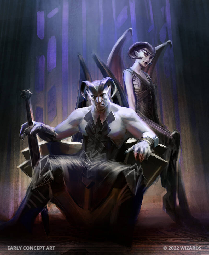 一开始内容还不明确时的提案是这将会是一个部族时空,因为在意的是恶魔和天使,并被暂时设定为三色弧的系列(在阿拉若时空上又被称为断片)。会议中大家的一个顾虑是担心这个系列会在基调上与依尼翠过于接近,所以 Bill 表达希望找到方式来区分这两个系列的想法。由于我们曾製作过很多时空,在製作新时空时往往都会有所顾虑。我们是否可以找到一个方式来让它独一无二,不会感觉只是像一个既存时空的延伸?