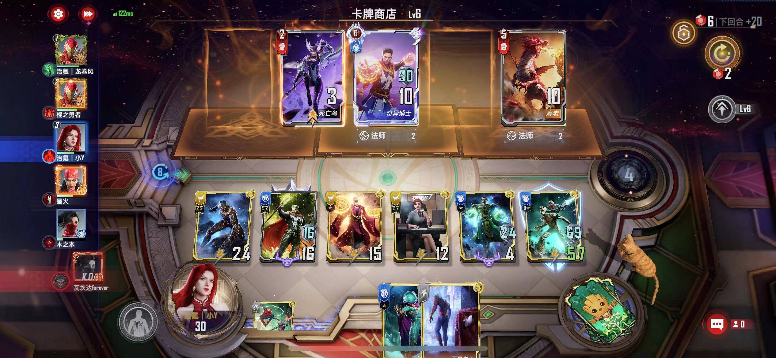 钢铁侠和冲击光波可以打掉莫度让对手少一次复活机会。(前期黑豹给的3费加护甲优先给到莫度,可以吃一次光束不死)