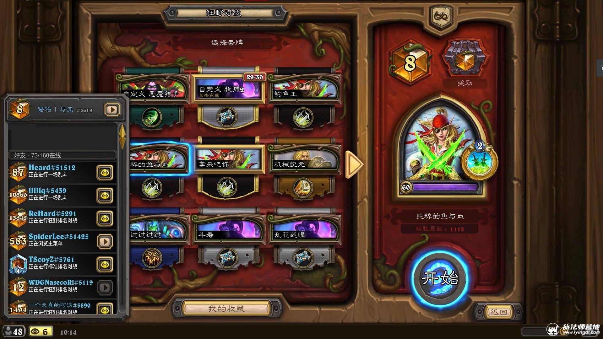 因为碰到了两三个海盗贼都用剑鱼把我砍翻了,于是对这套牌产生了莫大的兴趣(那把刀实在是太大♂了主人我好想要啊),而这套牌完全没有辜负我对于他的期望,一上来就给了我一份大礼:1000名到300名的13连胜。