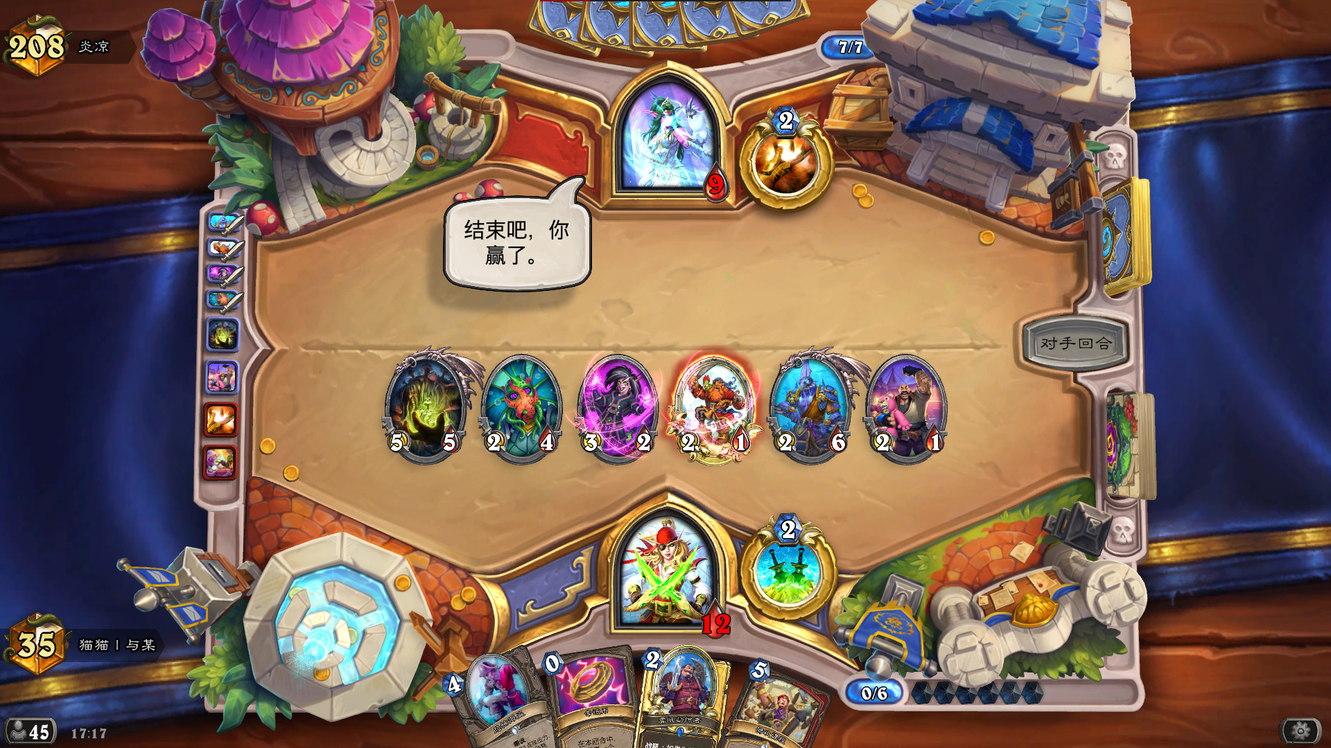 海盗战和奇数战,海盗战怎么打不用教,和暗牧一个打法,奇数战怎么打也不用教,因为我也不会,这种纯粹抓快攻和凯子的卡组赶紧灭绝啊啊啊你不要过来啊啊啊啊啊啊
