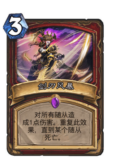 此时的激怒战开发了一套熟悉的全新打法,虽然我前面说:狼人战是奴隶战的精神传递者,但学到奴隶战打法本事的我觉得是激怒战,因为二者都是把对所有随从造成一点伤害的“双刃剑”,变为了“损人利己”的好处,不过奴隶战是把这种好处更多地用在了奴隶主,激怒战甚至算发扬光大了,是用在了整局游戏的节奏。核心关键113艇长,贴吧艇长释放三次旋风斩,有他释放才能多赚好处。好处能烧场面夺,好处能防叠甲过;好处能生炸弹获,好处能站随从迫;好处能过出牌阔,好处能分复制个;好处好,好处多,好处帮我天梯火。