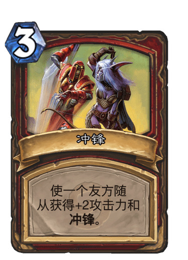 狼人战的打法与前辈奴隶战是相似的,既然3费的冲锋夏一鸽到了,那就再来个3费冲锋,战士3费经典法术:冲锋!冲锋,带大伙再冲一次!
