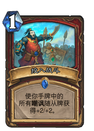 I have a chaofen,I have a wushou (Uhh~) chaofen - wushou! 之前说过同时炒两份儿冷饭就不是炒冷饭。暴雪在奥丹姆给战士带来了任务和嘲讽,然后这个任务是28个任务里面最垃圾的!(我当时开包的版本赠送首橙),所以只能走嘲讽。这次的嘲讽,暴雪的意思是缝合以前的污手,实话讲,这次缝的嘲讽污手确实是做到家了,不再是开衣柜没把手——抠门,什么以前的那种只给一个加,不怪一单位的老乌天天笑话你,现在好了,也是全加,还是加2。嘲讽战确实是在刚诞生时拿下了成绩,尤其是和那个破任务对比,加buff的橙卡与法术,战士版老乌龟,大号的这还得熬多久都还是硬教你玩套路中可以的卡(永远比冰萨强)。