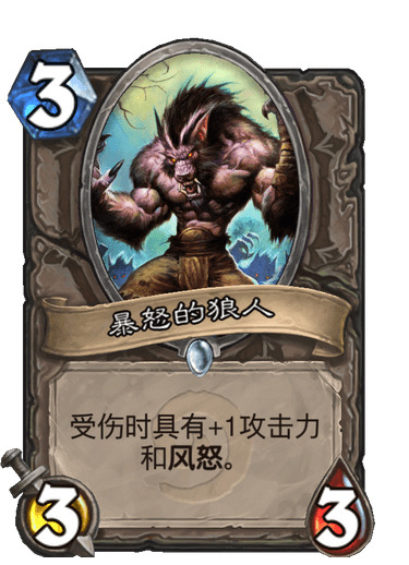 狼人战就是前期对所有随从造成伤害进行解场+过牌,也造就炎术士+苦痛这一黄金组合!中后期凑齐组件,一套带走。那个时候快攻看着战士解场是安心的,因为就怕哪一回合,不解了,很大概率是先卖一回合血,下回合就狼人,冲锋,怒火中烧(2),(3+1+2+2+2)×2=20,6费20伤害。