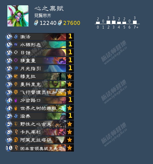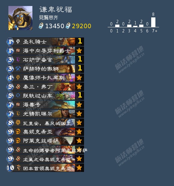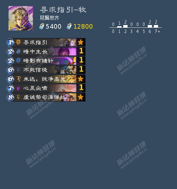 海中向导芬利爵士:帮助过牌,更容易找核心卡<谦卑祝福>。如果起手已经有<谦卑祝福>或能稳定抽<谦卑祝福>的卡牌(如<圣礼骑士>、<石炉守备官>等),则可不留。在中期或后期对局中,<海中向导芬利爵士>可以调度手牌,帮助找铺场、解场或斩杀牌,非常灵活,建议必带。补充一点,<海中向导芬利爵士>交换手牌,不触发“抽到时释放”效果,对战炸弹战时或有奇效。