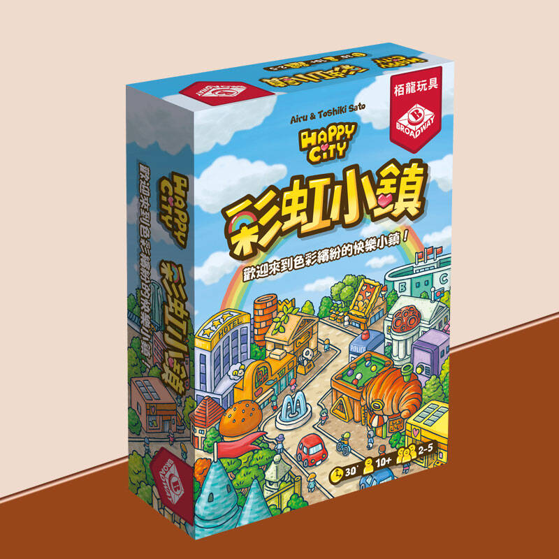 《彩虹小镇》是日本出版商Sato Familie 在2018年发行的《Happiest Town》的新版本,游戏中玩家需要购买卡牌,建造建筑,管理收入,吸引最多的居民并提升他们的幸福度,建设一座最快乐的小镇。