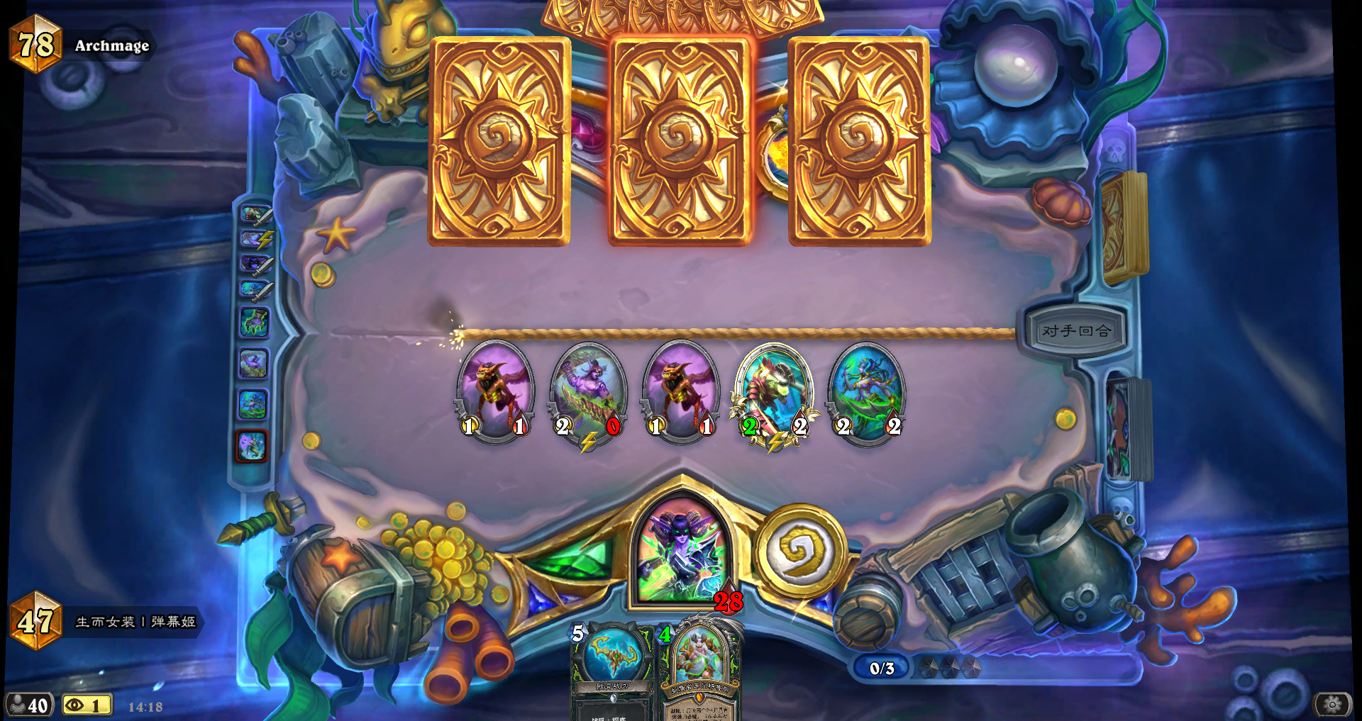 基本上现在就是以娜迦法为主,这个大概也不取决于我们,基本上看随机和启动早晚,逻辑上是没有回复的,但有可能通过符文宝珠和小学生提供几个冰甲就超出斩杀线了,一般来说在他425启动的时候我们不那么糟糕,他没那么早,基本上他也没法在后面一回合打死我们,我们也能利用这1-2回合的空隙去斩杀对手。