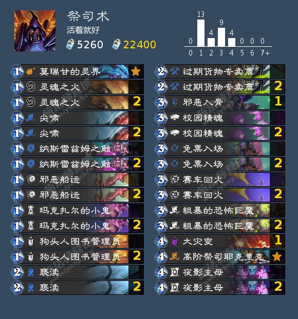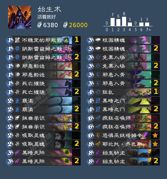 攻略就是起手找黑暗之门还有免票入场,尽快把卡组里的随从上手。如果能成功减费,就可以644加1个1费法术解自己1个小鬼再始生幼龙。没能减费就只能第一回合下644,下回合再始生幼龙,祈祷对手别解场就好。如果始生幼龙活着可以用它解场加加进度。