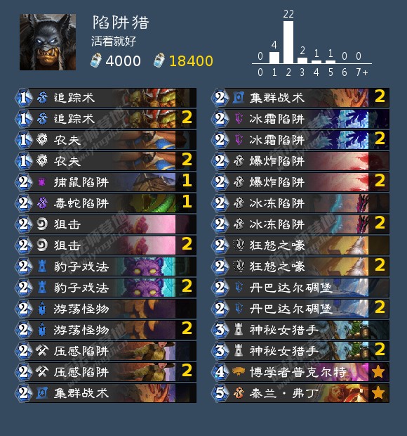 一堆可怜的秘密。使用150张0费的猎人奥秘。累积型成就,其实很简单,就是用334女猎人的效果挂奥秘就好了。45组合再次出手,轻松检索334.只要334站场就可以用奥秘了,还不怕塞布的哦。多多选用好触发的奥秘,毕竟奥秘只能放5个,所以早点触发就可以多用几个0费奥秘。之前被宇宙法姐夫照明弹,对手还说谢谢,其实作者我才想说谢谢呢,又让我多挂了5个0费奥秘。