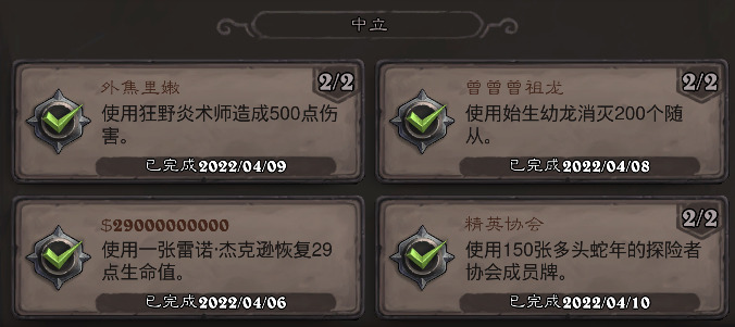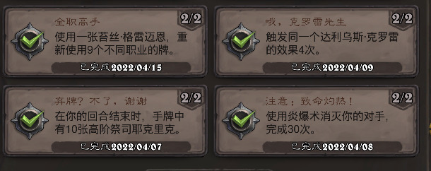 3由于作者我是标准玩家,所以刷攻略都是用的标准卡组。这次全是标准做的成就,部分成就在狂野做应该很更快,作者不说狂野卡组了。