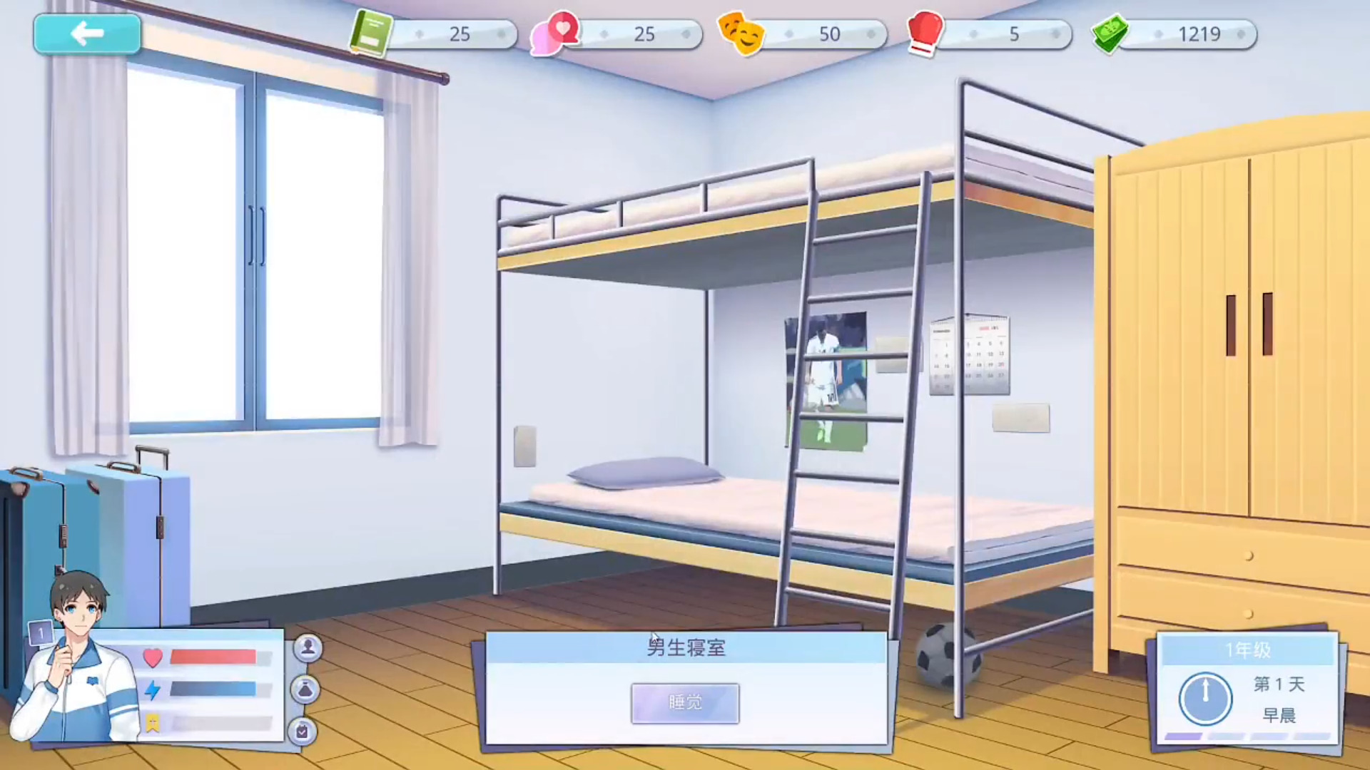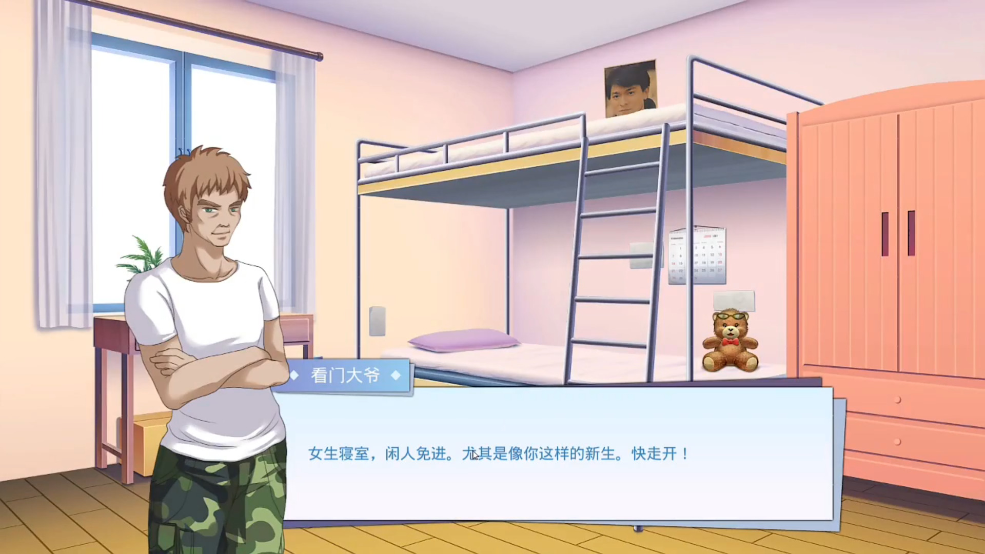 其他建筑也很胡闹,就比如男生寝室楼,那么大一个建筑,点进去直接进宿舍,而选择也只有一个:睡觉。