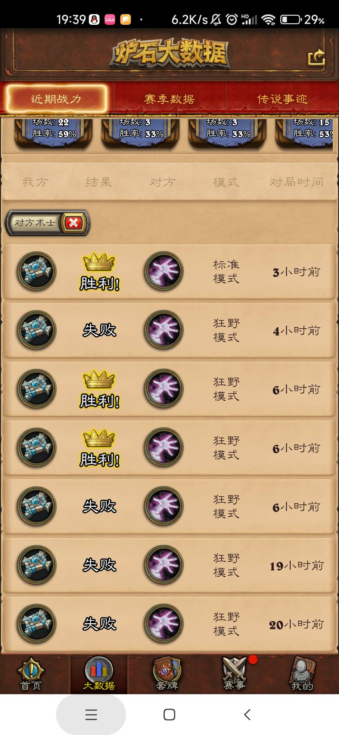 作者在新版本第一天开始陆陆续续的打了接近300局,用这套套牌以59%的胜率打到的低保。