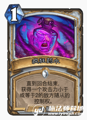 这张疯狂药水,如果作者要称它是快攻内战局里面最好用的解场法术之一,我相信我能说服相当一部分的营地老哥,一张牌解两个频率,而且使用起来没太多条件和低廉费用。(以及两点斩杀)(或者是32-178点)