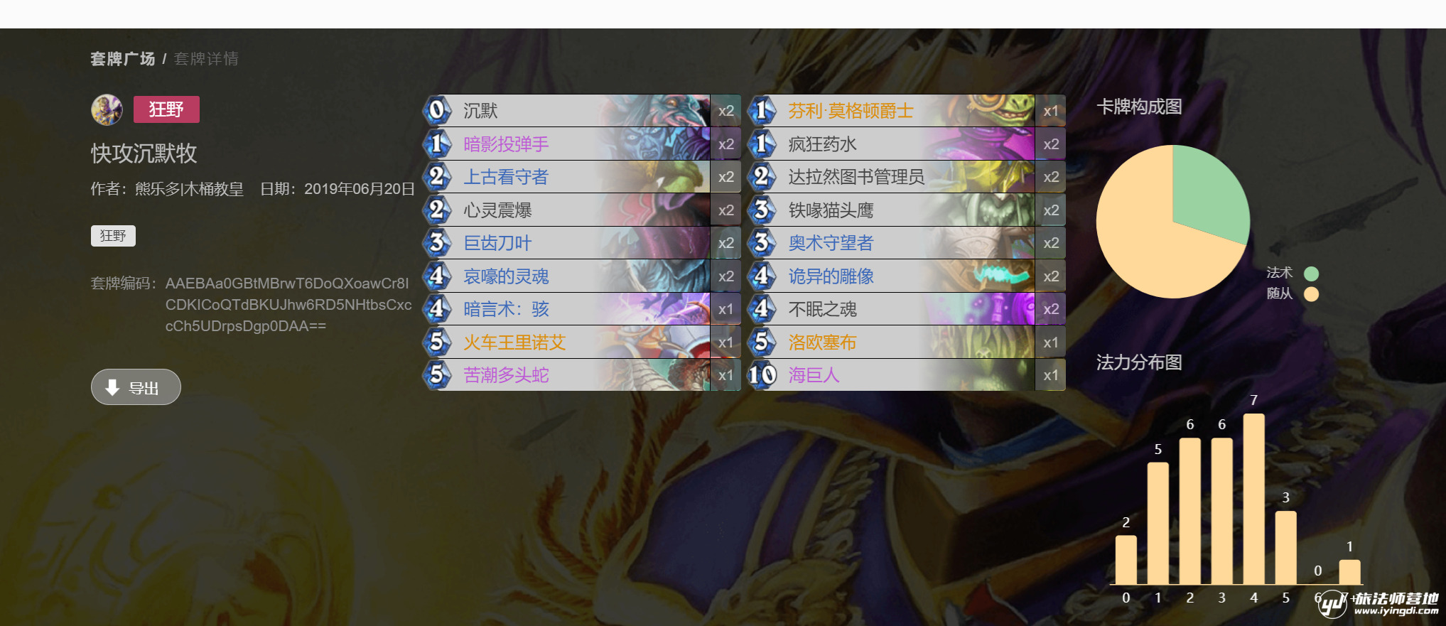 制造一个对面看不懂的场面压死敌人,至于具体怎么做,那就具体问题具体分析了。我们讲究的是,作为一个给人感觉就像一个大聪明亚子的套牌,稳中求进,不要贪,压制场面,慢慢(指5费剩下6血)蹭(指一脚至少4血)死对面因为整套卡组没有任何直伤,所以也不用考虑什么神抽的事情,拿着沉默当震爆让对手害怕去吧。