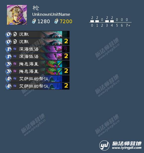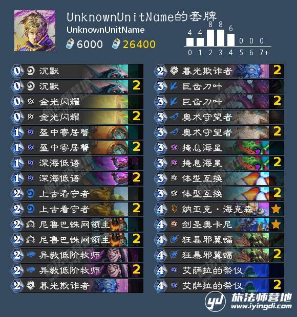 他在自己的回合可以拿出大量伤害,缺点是随从血量偏低,我们的应对思路是频率大于质量,深海低语依旧是关键牌。