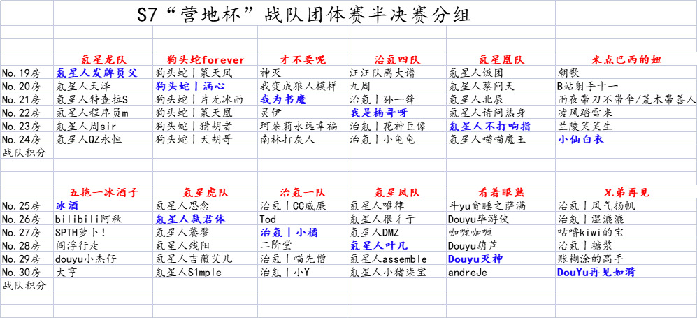 S5第四届“营地杯”水友赛团体赛: