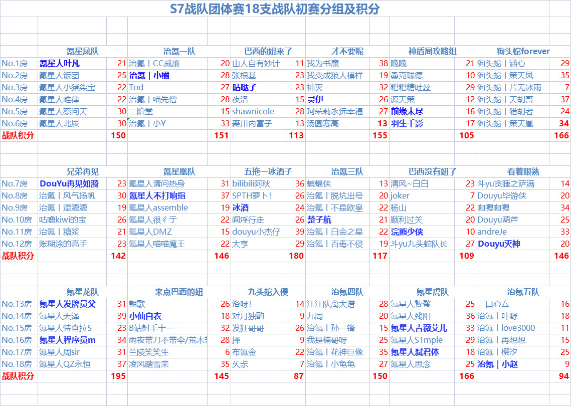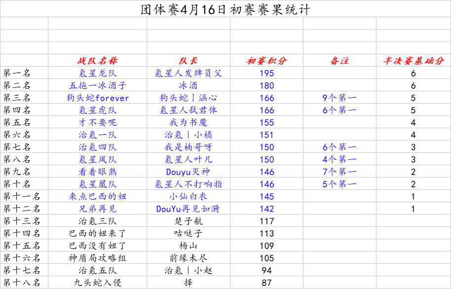 4月16日,S7“营地杯”战队团体赛初赛战罢,本次战队团体赛一共有18支战队参加角逐,以下是本次比赛初赛五场战斗的最终战况: