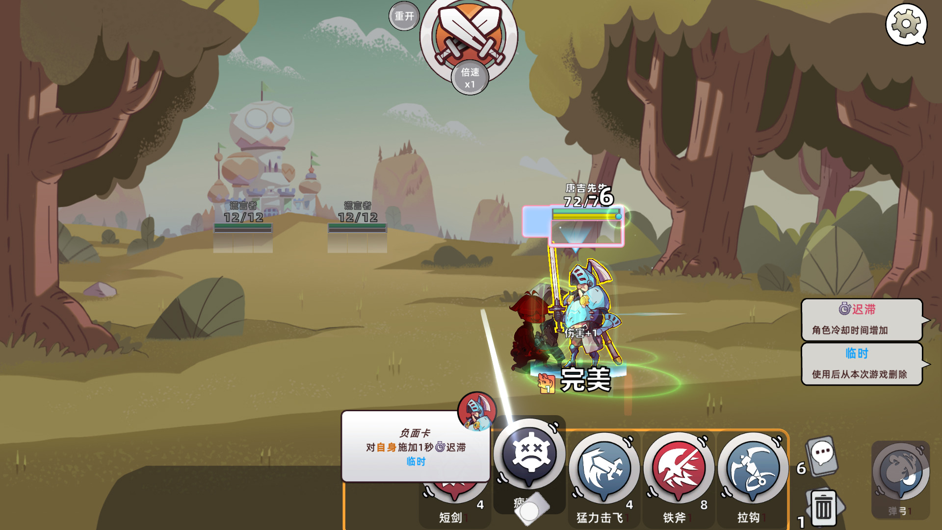 而能获得这些疲劳的卡中强度也高低不等,比如伤害比短剑强一点的铁斧,可以将敌人击飞的猛力击飞,亦或者将敌人拉过来的拉钩,我个人比较喜欢拉钩,尽管它的动画表现真的非常low,但是在拉过来之后敌人会傻乎乎的走回去,而这段时间他的行动槽是不会增加的。