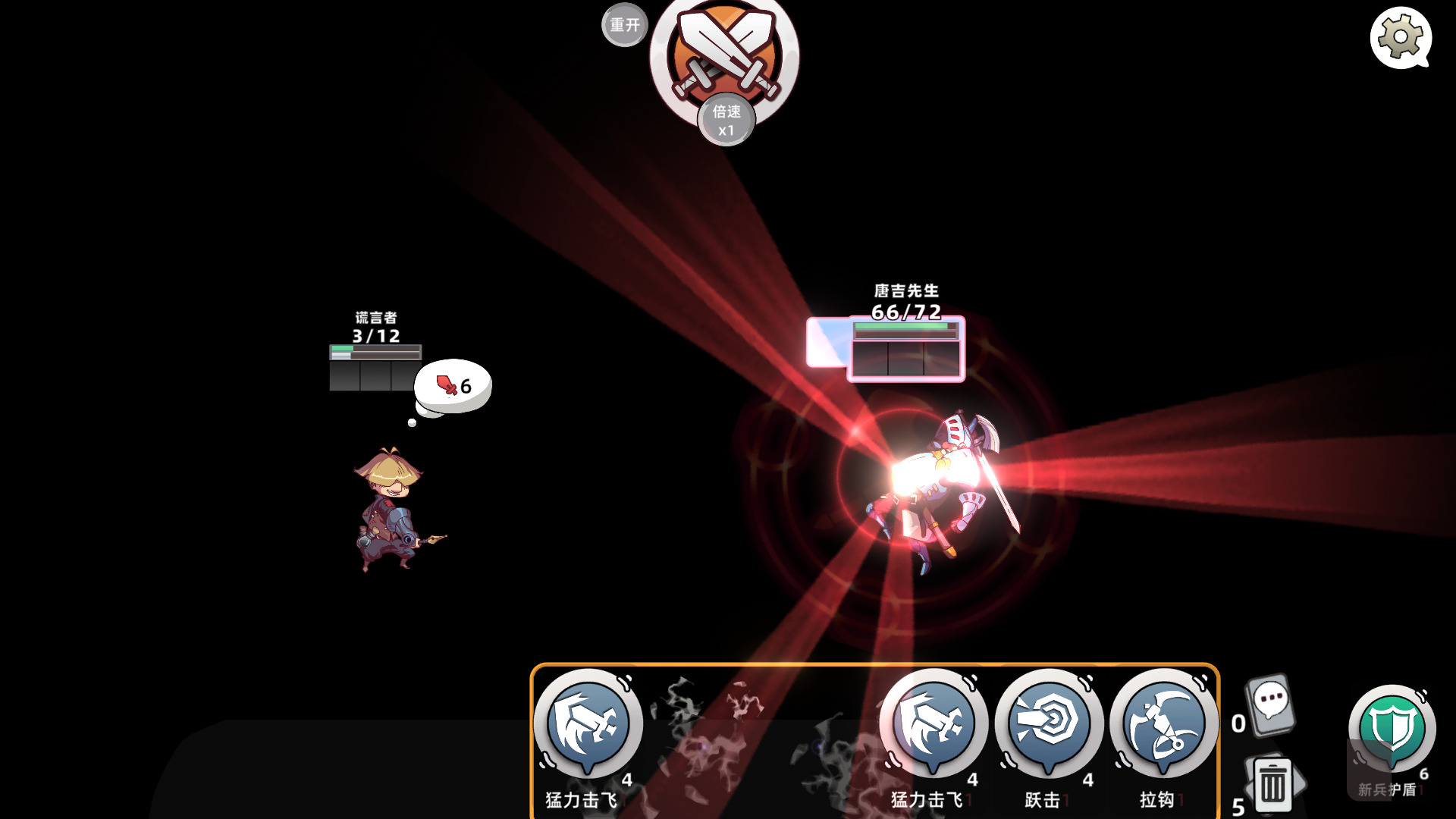 作为一款策略游戏,有时候负面效果的卡未必一定是负面作用,玩家依旧有机会将其转化为正面收益,这里就要说本作的技能系统了,角色在打出一定数量的牌之后可以释放技能,而初始角色骑士的技能中规中矩,即立刻造成一次打击,但是他还有额外效果,发动时会消耗自己手牌里的所有负面特性卡,并根据数量来增加伤害。