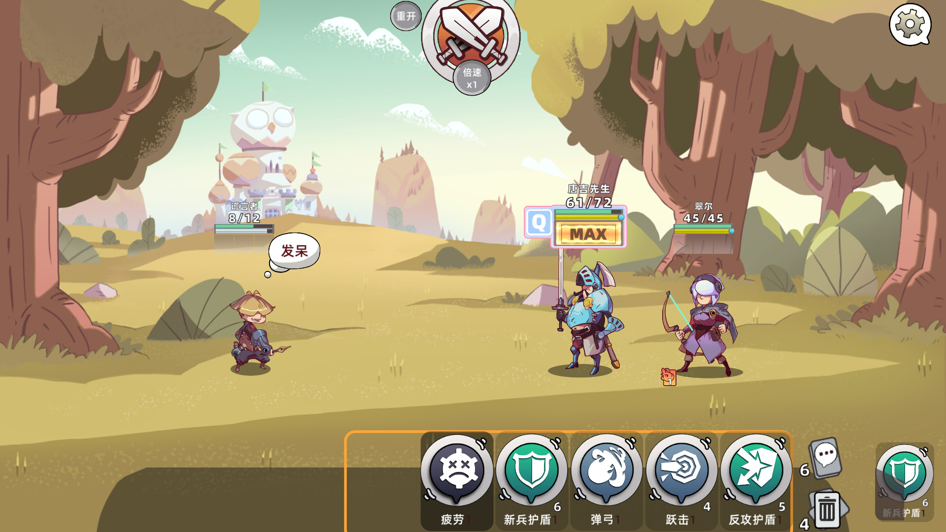 在拥有多名角色进行战斗时,本作的策略才能被完整的体现出来,所有角色共有一个手牌,每回合获得的牌也是共有卡池,在这种基础下,玩家就必须合理分析并运用卡牌,比如弓箭手翠尔拥有当队友进行紧急防御时可以临时生成一张木箭,**减缓了输出牌不够的窘境,但也因此玩家要注意输出对象,前排角色的攻击时不仅不能紧急防御,也会让敌人有可乘之机攻击后排脆弱的弓箭手。