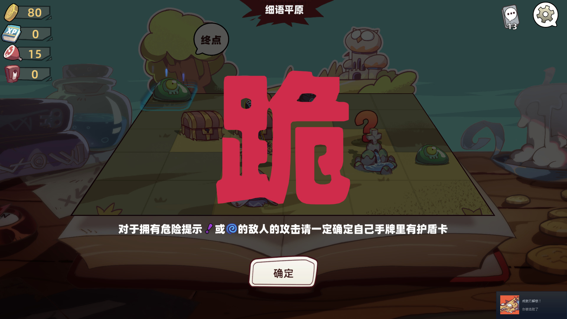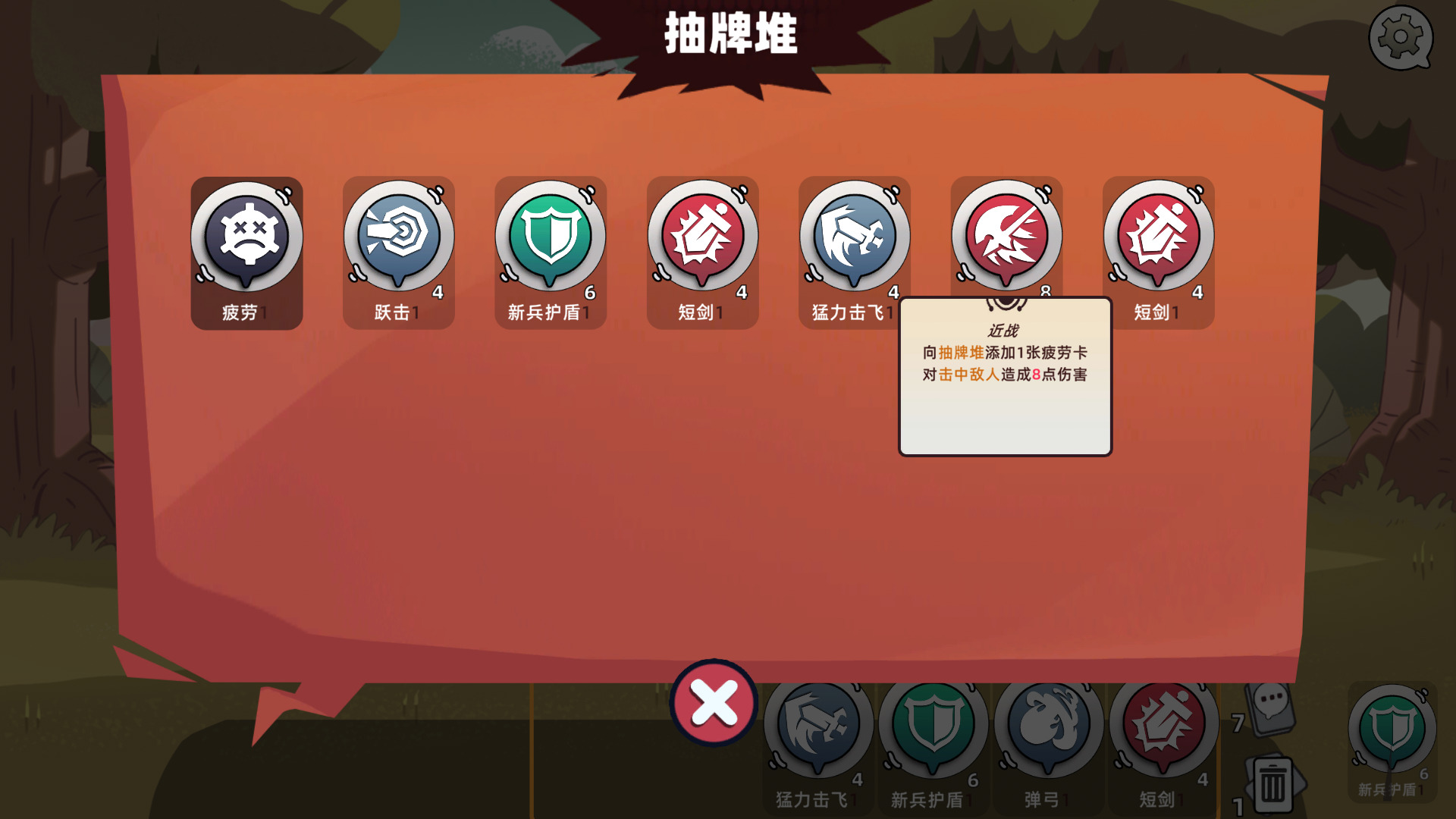 在战斗胜利之后同样可以获得金钱和卡牌,依旧是不要随便选,本作有很多释放后会获得一层疲劳的进攻卡,疲劳卡不仅本身没什么用还占你卡位之外,发动它们还需要一次行动机会,并且很多进攻卡还是在你的牌堆中生成疲劳,一旦出现在右下角,你还得花时间来获得它。