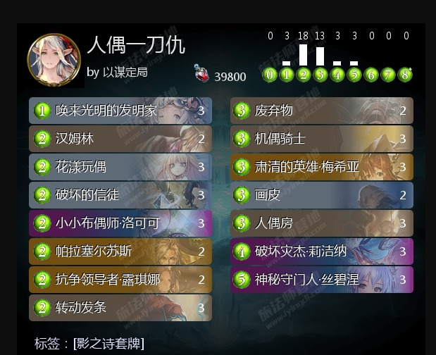鱼丸初登场的时候,就因为许多崭新的机制而备受关注,造物能大量向牌堆中洗超模牌再抽出来,人偶则是一堆“0”。从来没有一个体系能像人偶仇这样快速而大量的获取一堆零费牌,在卡牌游戏中,零费意味着无限的可能性(隔壁:零费是危险的设计!然后新版本出了一堆零)。