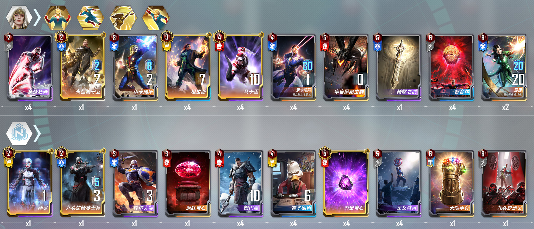4、5:回合拉战力找伊卡祖拉斯——找到了安稳运营,如果你拿到的技能不是天降合天神之力。伊卡没来之前援军卡不合二星。【格鲁特除外需要它来过牌】