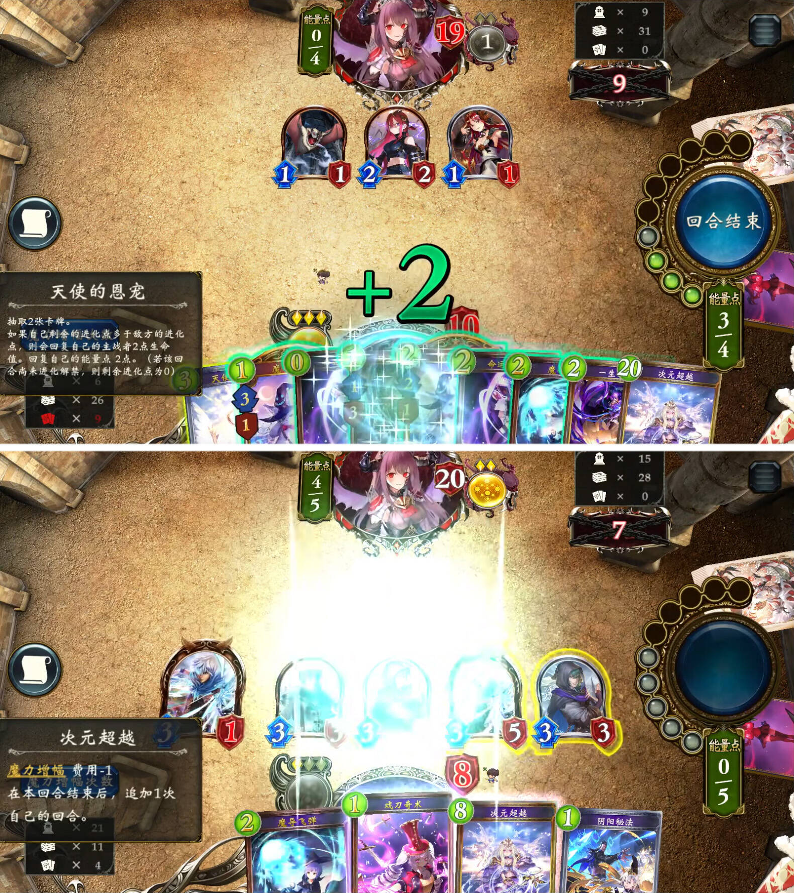 天使的恩宠能在后手第4回合以后高效过牌、回血、刷增幅,也是合格的先手第3~4回合动作。