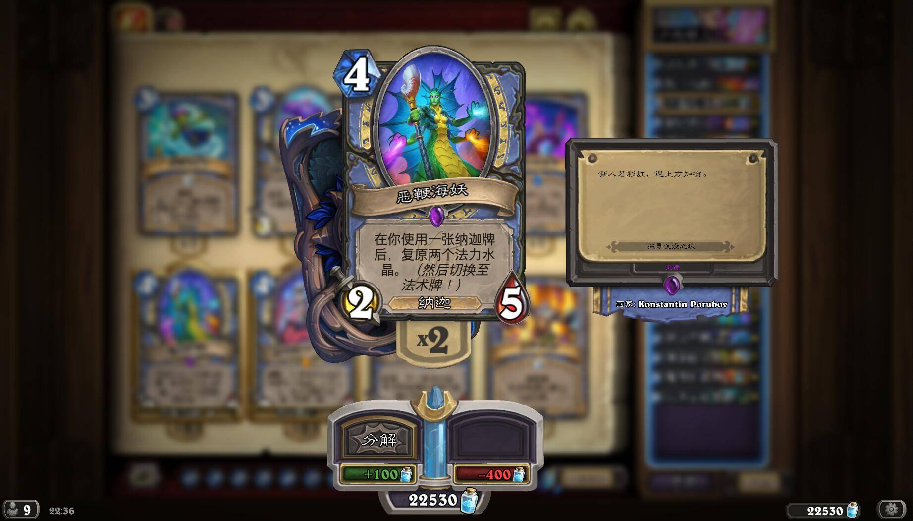 恶鞭海妖,法师的黑眼,配合卡组的低费法术和低费纳迦达到电表倒转的效果;