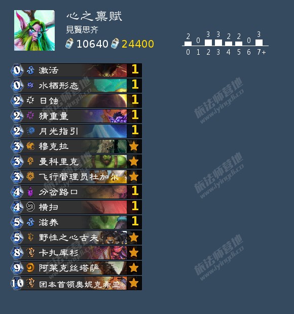 日蚀:低配双倍速。配合跳费、抽牌、解场、斩杀,表现优秀。起手一般不留,前期易卡手,在高费时使用能起到更大作用。
