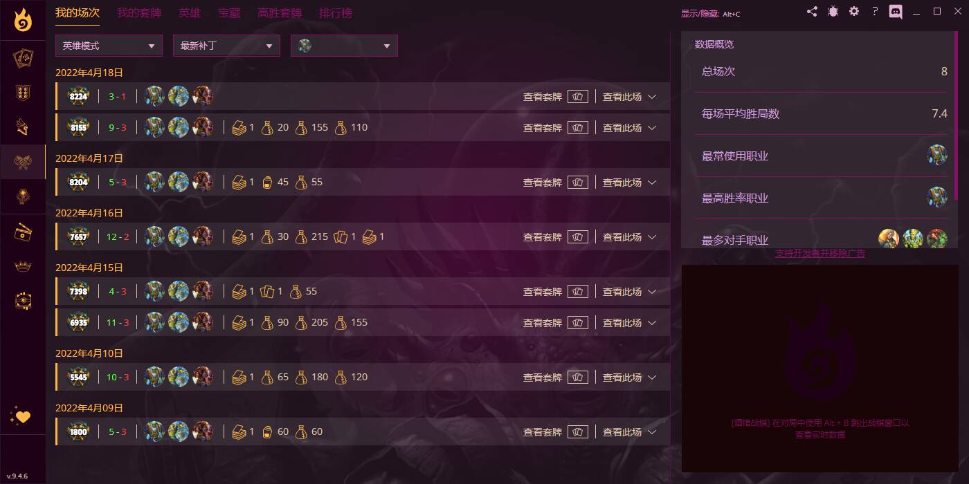 战绩镇楼(实际场均应为8.5,有一局没打完,用手机打完的12胜,战绩未记录):
