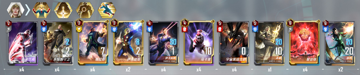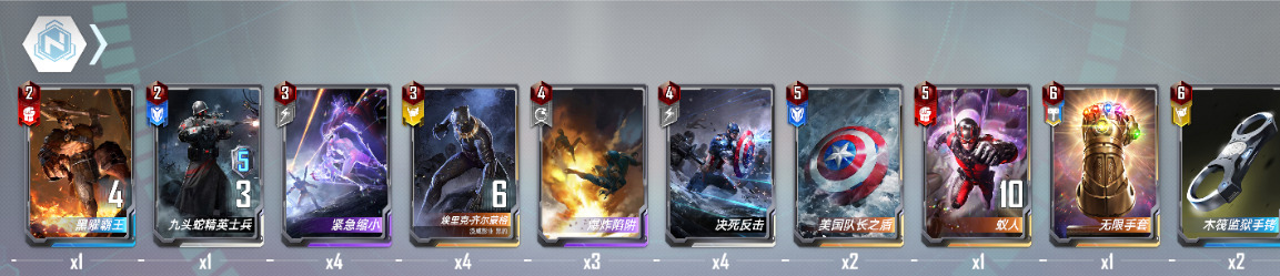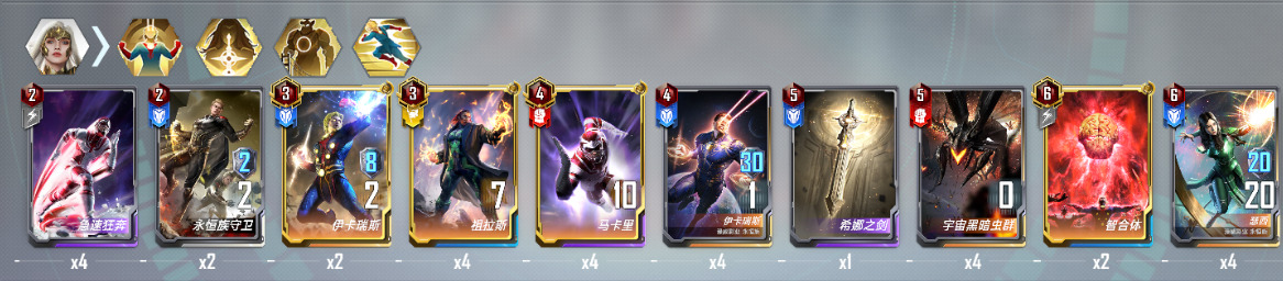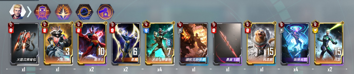 接下来就说说我的卡组构成吧,S5和S6我用了星爵搭配钢铁侠的援军: