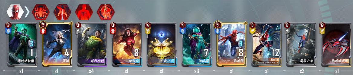 (第二回合)这里看到啥就拿到,运气好的话有豹子啊,祖拉斯啊,3费伊卡瑞斯这里看到了看情况拿,如果经济允许像祖拉斯和伊卡瑞斯都拿那肯定相当完美,相互加战力,嘲讽给祖拉斯加战力,给黑豹,蜘蛛女加战力也不错,当然还有一种就是可能来缩小,如果来缩小,我的习惯是看自身和对手战力再决定要不要再次跳本!一般情况下,我不会贸然跳本,再第二个回合把战力提升起来是个不错的选择!