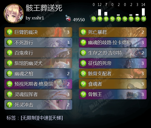 旅馆的幽灵犬与巨臂的裁决的加入**提升了葬送浓度,这不仅使第3回合瞬念召唤征伐的死帝变得十分容易,还使第3回合用不死游行召唤2个巫妖变得不再是天方夜谭。