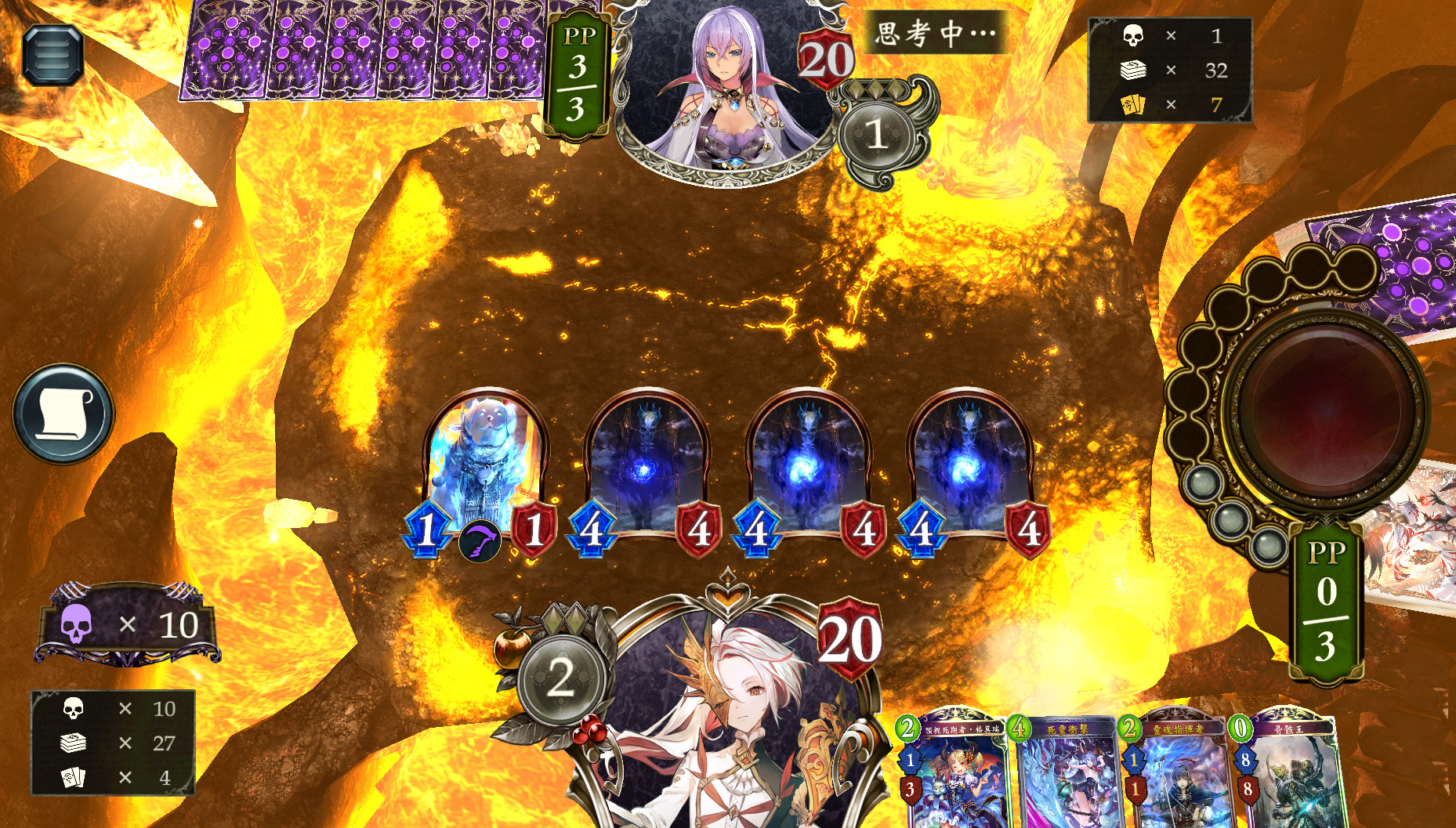 第3回合优先采取能瞬召死帝的打法。留意场地数,特别是场上有指挥者或准备使用指挥者的情况下。可以送掉场上的指挥者来避免卡场,也可以先用1费葬送牌,后用指挥者,避免卡场。能触发游行的召巫妖效果的话,优先如此做。还可以使用2张能过牌的1费葬送牌,赌神抽、打出上限。