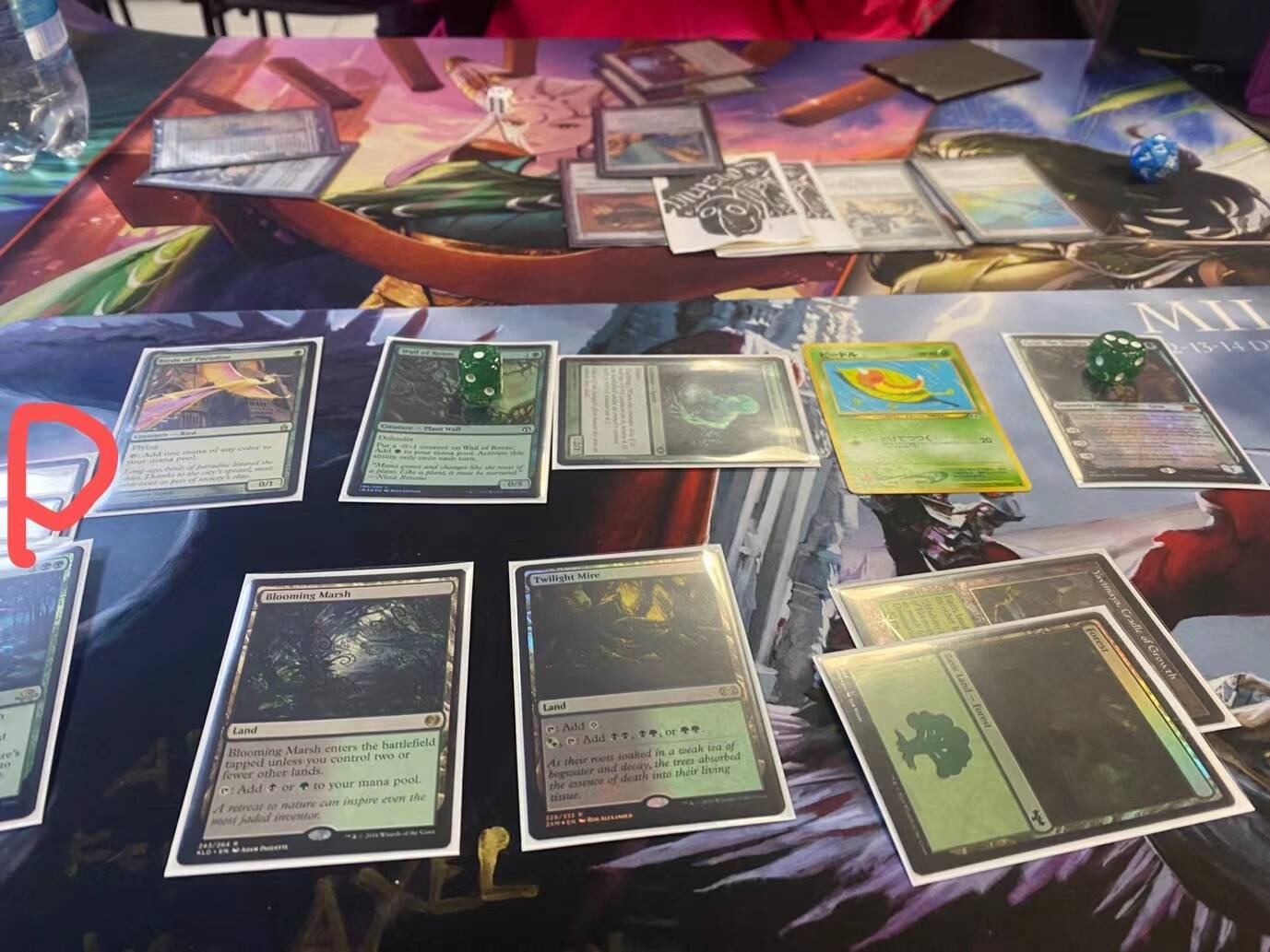 第三轮,对面洗牌失误掉了张死亡阴影出来(心里瞬间有底了),第一局我一直在铺场对手也一直在用counter spell 和送终一击解场,然后为了保持血量,我用导师找腐蚀流浆吃自己坟场生物,打到后期血量比5:9,对手用借物灵弹走流浆并用shadow与之进攻,此时场上我有一张鸟和一个横置的无豆信差,我用天堂鸟阻挡借物灵中了一脚8/8 shadow,此时生命值掉到了1血,下流浆连吃三个生物,信差进攻,血量比来到了2:4,对手用飞机和shadow进攻,流浆填掉阴影此时生命值来到了1,然后对手生拍街道鬼魂,但他好像忘了此时信差是无豆的,所以下一脚对手挡不挡都会死,第一把艰难拿下,第二把对手天胡开局又是找地又是思绪又是街道鬼魂,第三回合顺利挺出两个3/3阴影,此时我场上一个鸟一个有豆游魂手里有约哥和送终击,想着贪一点下回合在看看,结果对手闪现褪除武装,卒。第三轮我光速展开场面既有加速人又有不息人开始猛袭,对手在循环街道鬼魂和疯狂使用详加考虑之后一直找不到第三块地,无奈下阴影阻挡,我主回合使用邪异进化牺牲主教找格瑞斯然后牺牲游魂去除掉shadow,游魂不息反场猛袭击毙对手,赛后聊天我发现这三局对手都没用到猴儿但对手明明又有红色法术力,对手听闻解释说猴儿太贵了压根儿没带,我尴尬的笑了笑说si si确实不便宜(看来国内外牌手都对猴儿价格表示无奈)。