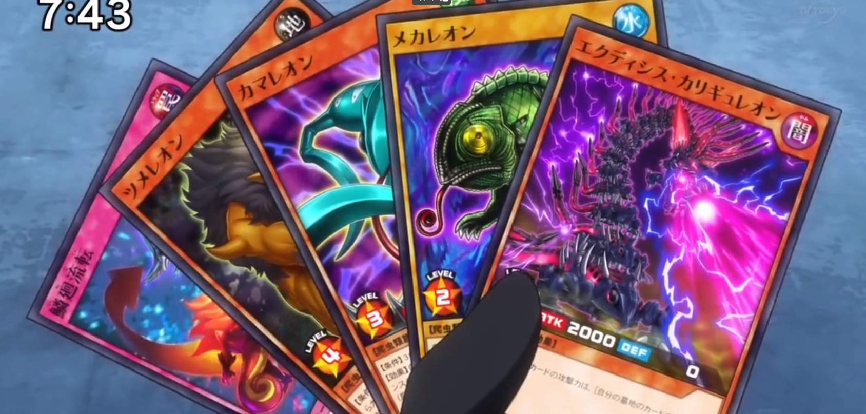 哥哈游我的回合,出2个下级,发动镰刀变色龙的效果支付300血,堆3。有通常爬虫类的话回收1个爬虫类。