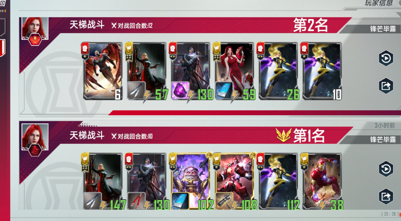 三、把决赛整容凑起来:女校长4星,钢铁侠1星,钢铁侠2星,绯红机甲4星(根据实际情况可替换),春寡4星,恐惧本源寡妇1-4星
