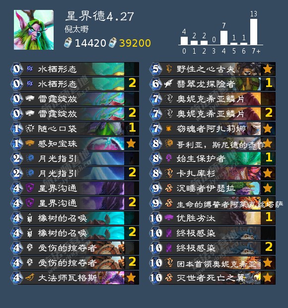 卡组标签:狂野、德鲁伊、万金油、吃吃吃、OTK、无限手牌