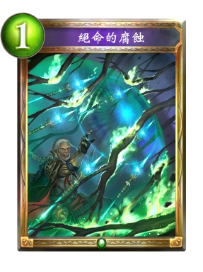 绝命的腐蚀能针对铺场思路,在合适时机抽到便能发挥巨大价值。可惜的是,雪华妖过牌能力较差,无法容忍抽到多张腐蚀,因此投入1张是更普遍的选择。