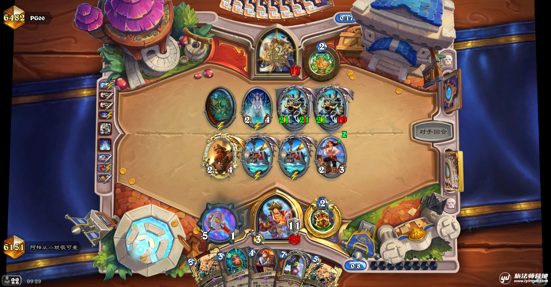 德鲁伊作为冒险boss确实是压在我们卡组头上的一座大山,极快的过牌,充足的法力水晶还有赖皮的宝藏确实给的压力太大。但是我们这个卡组在不是牌库倒抽,并且合理分配解牌的情况下,是稳稳进入第四阶段,即挖宝阶段的。所以我们虽然面对德鲁伊胜率很低,但是至少能充分体会到挑战boss的感觉,还是挺快乐的。赢法有如下几种:前期特别顺,对面不胡,海盗船还蹦出个重拳血吼把对面推死(概率极低);吃手手吃掉卡杉;英雄牌敲森林之王偷鸡;最后就是硬解或硬吃10个宝藏。最爽的赢法就是最后一种,打掉10个宝藏有多爽你们无法想象。