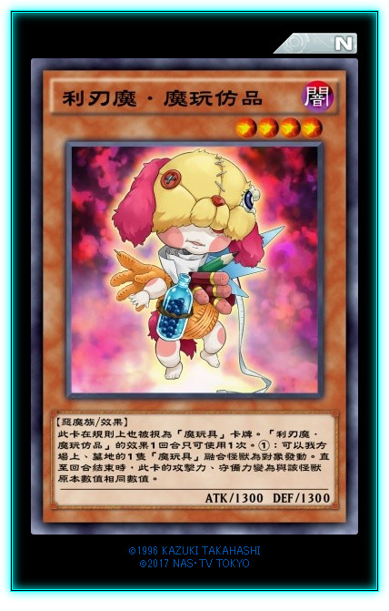 效果和他的名字一样,模仿墓地一只魔玩具融合怪兽的攻守数值,但是不复制效果,没啥用。