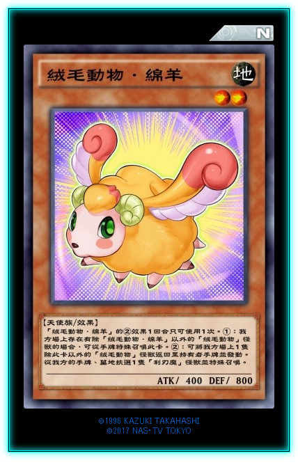 绵羊为绒毛动物本家特召点,利用自身效果特召后,可以把自己以外的一只毛绒动物回收,从墓地拉一个锋利小鬼怪兽。比如通召熊,特召绵羊,绵羊回手熊特召墓地的剪刀,熊堆墓发效果检索玩具罐,罐子再发效果赚卡。