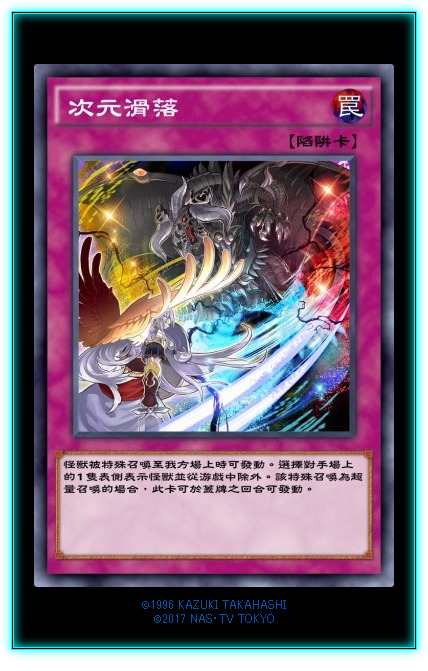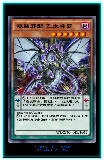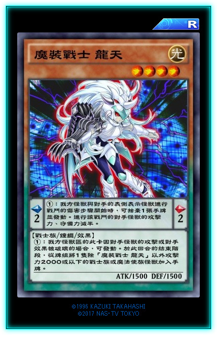 来自1105的泛用R7,理论上黑魔导和真红眼卡组都能用,但是总的来说不如击灭龙,反正用完效果都是不能攻击,击灭龙能炸两张呢,而且攻击力也更高。这张卡的效果虽然可以二速,但是必须用龙族怪兽作为素材才行,比较好出的可能也就是异色眼卡组了。