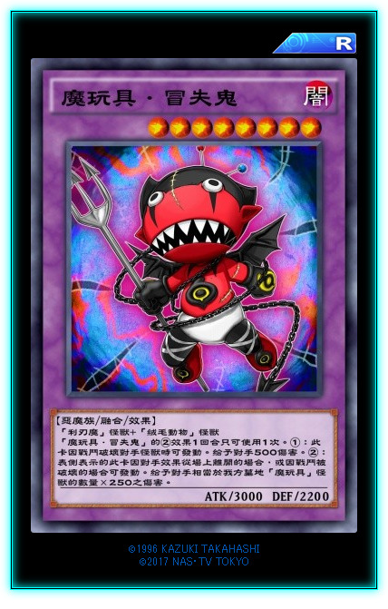 动画里魔玩具的大哥,攻宣三封,战破牛怪。但是融合素材要求极高,属于最后的杀手锏了。