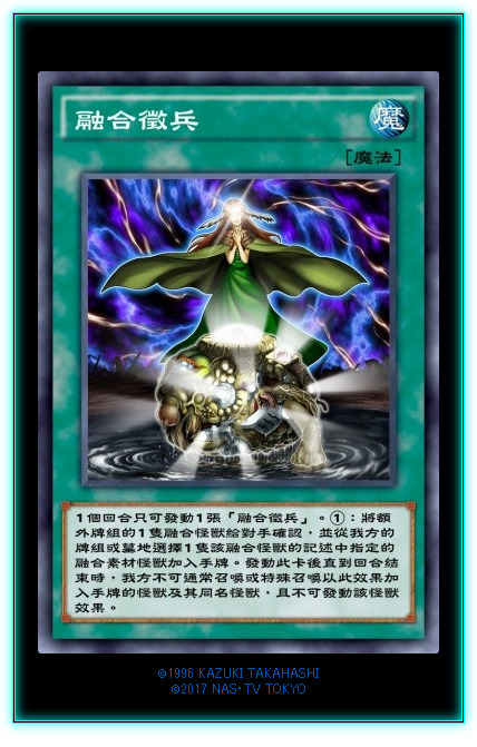 检索融合素材的魔法卡,检索到的怪兽虽然既不能通召也不能特召还不能发效果,但是可以当融合素材啊。偏娱乐的卡,动画里素良使用过的。