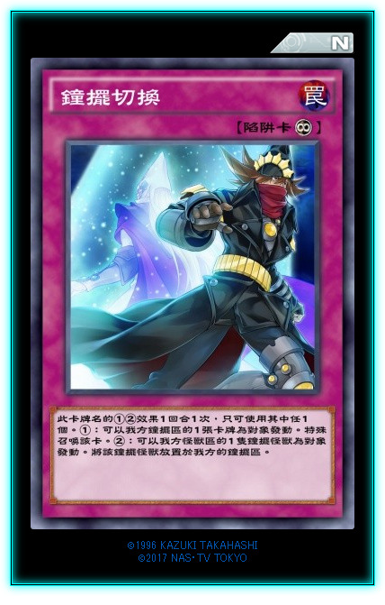 DL第二只额外灵摆怪兽,俗称黑CEO。灵摆效果可以忽略,能出的虽然有小怒涛、狙击王、磐石王,但是我估计都不一定带这三张卡呢。怪兽效果的话,①效果出场加一个垫子,不过鉴于大概率是用两个CEO叠,所以应该是加不上。②效果,给自己的灵摆怪兽提供效破抗性(包括他自己),毕竟以黑CEO的攻击力和守备力,想战破他还是不容易的。③效果,一回合一次,拔一个垫子,取对象炸对手怪兽,数量等同于自己场上灵摆怪兽数量,最少炸1。④效果和霸黑的③效果一样,但是黑CEO被破坏后只能做摆子,是没法再被灵摆召唤的,至少现在是不能的。