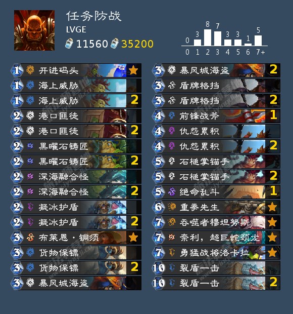 今天遇到的防战一般是下面这俩构筑,一种是驴鸽那种带任务的海防战,一种是补丁前就出现过的带铜须的防战。卡组先放上。
