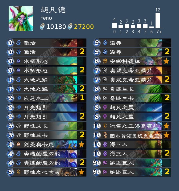 之前看虎牙登顶的包包直播的时候他提出:超凡不用带太多针对快攻的牌,不用怕快攻。尤其是末日和藻农这些牌,我觉得在补丁之后更是没有必要的,超凡之后你需要大量的法术过牌维持你卡组的运转,随从越多稳定性越差,现在奇迹生长削弱了扛快能力进一步下降了,干脆就别太怕快攻了,抓住优势的控制卡组对局即可。可能可以考虑的是带一张暗礁德鲁伊混一下前期。